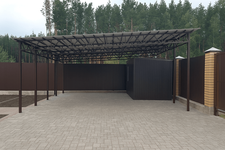 Навес для автомобиля из профильной трубы — это функциональное и прочное решение для защиты транспортного средства от осадков, солнца и ветра. Конструкция отличается долговечностью и возможностью адаптации под особенности площади участка и предпочтения заказчика.