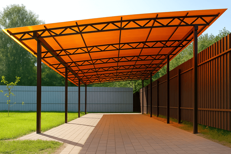 Односкатный навес — это практичное решение для защиты автомобиля, зоны отдыха или хозпостройки от осадков и солнца. Благодаря своей конструкции он прост в реализации и отлично подходит для участков с ограниченным пространством. Мы реализуем односкатный навес с учетом ветровой и снеговой нагрузки, рельефа и пожеланий заказчика.